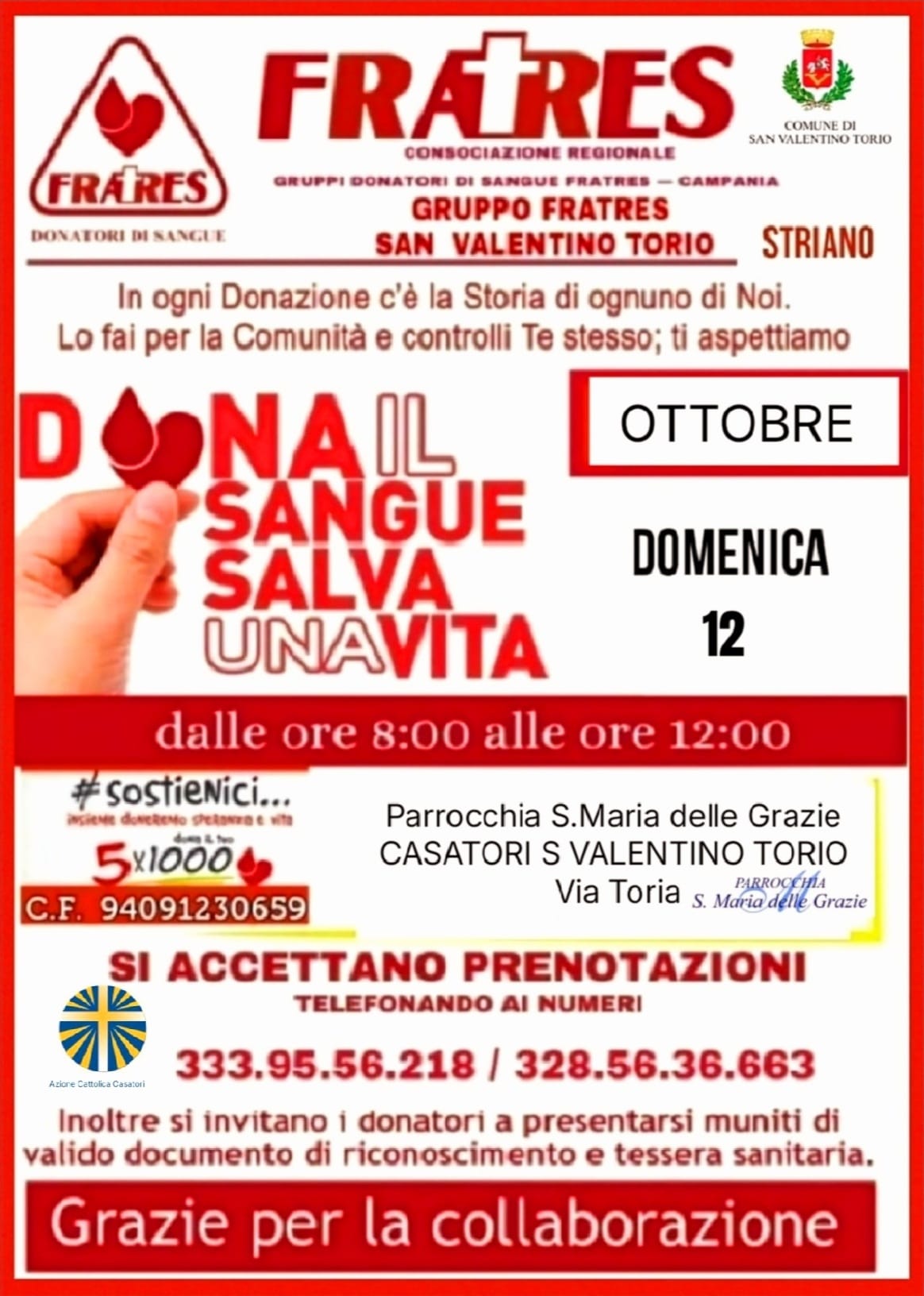 Si rinnova l’impegno dell’associazione Fratres Formisano di San Valentino Torio, che nella giornata di domenica 12 ottobre sarà a Casatori per dare vita alla seconda edizione della Festa del Donatore.