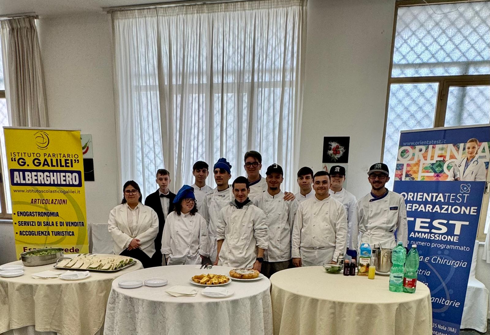 Oltre agli alunni impegnati nella elaborazione delle portate, bisogna sotolineare l’impeccabile prestazione degli stessi impegnati negli indirizzi Sala e Vendita e Accoglienza Turistica.