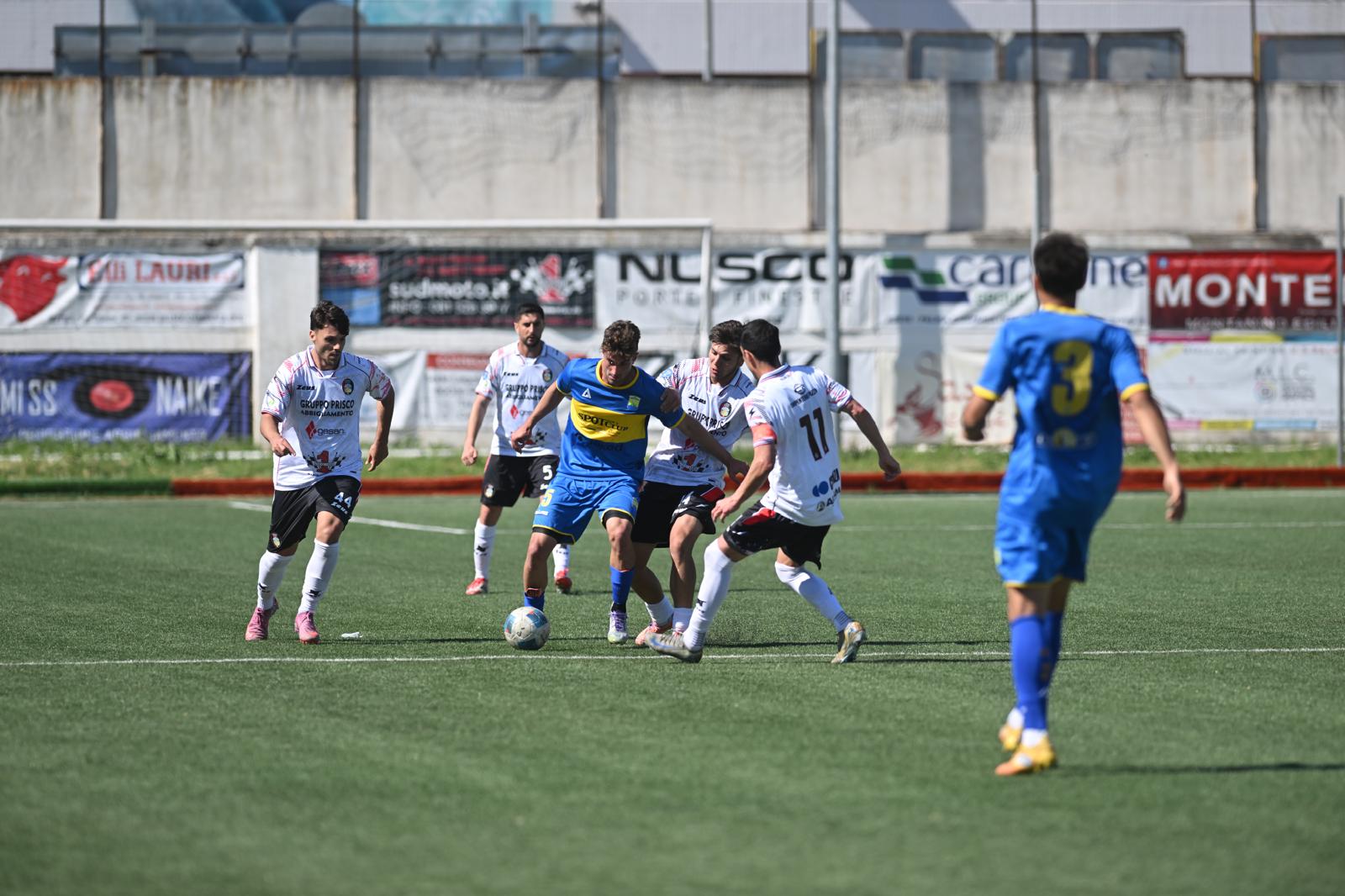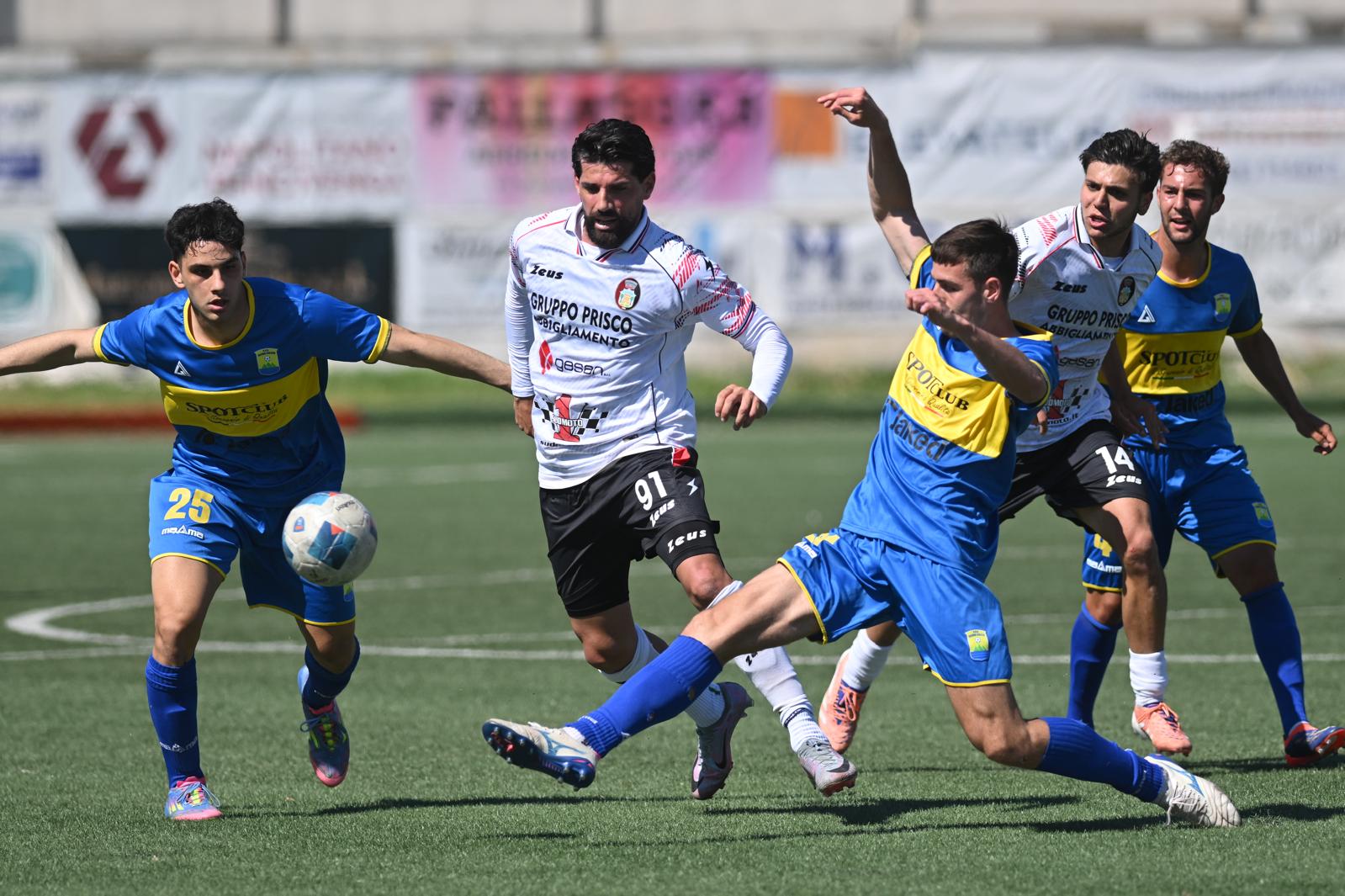 Il match entra nel vivo, con frequenti cambi di fronte: al 68’ occasionissima per l’Ischia, con Leone che respinge corto su tiro di Lopes, sulla ribattuta arriva Consalvi che conclude e prende il palo, poi Allegra riesce ad anticipare l’accorrente Belloni e a sventare definitivamente la minaccia.