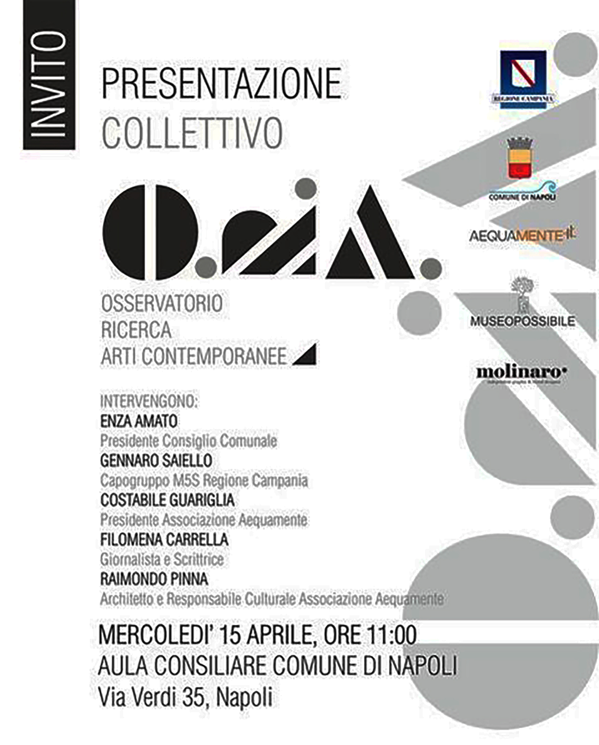 Il progetto è condiviso e sostenuto da un nucleo di artisti — Raffaele Boemio, Anna Crescenzi, Diana D’Ambrosio, Claudia Del Giudice, Francesca Di Martino, Giorgia Madonno, Anna Maria Mirabella, Mina Di Nardo, Tonia Erbino, Mariana Sofia González, Renata Petti, Maria Sara Pistilli, Anna Maria Saviano, Nella Tarantino e Renzo Vassalluzzo — che, insieme ai fondatori, contribuiscono a definire l’Osservatorio come un’esperienza al contempo critica e fondativa.
