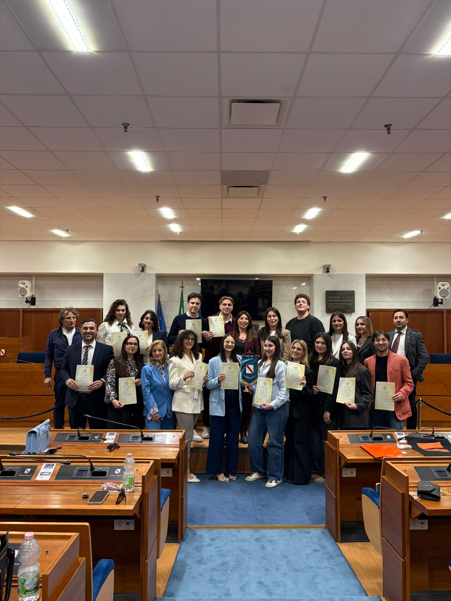 Prima della cerimonia conclusiva, i ragazzi hanno vissuto un momento di particolare valore istituzionale: l'ultimo incontro del percorso si è tenuto presso il Consiglio Regionale della Campania, al Centro Direzionale di Napoli, dove il gruppo è stato accolto dalla consigliera regionale Bruna Fiola.